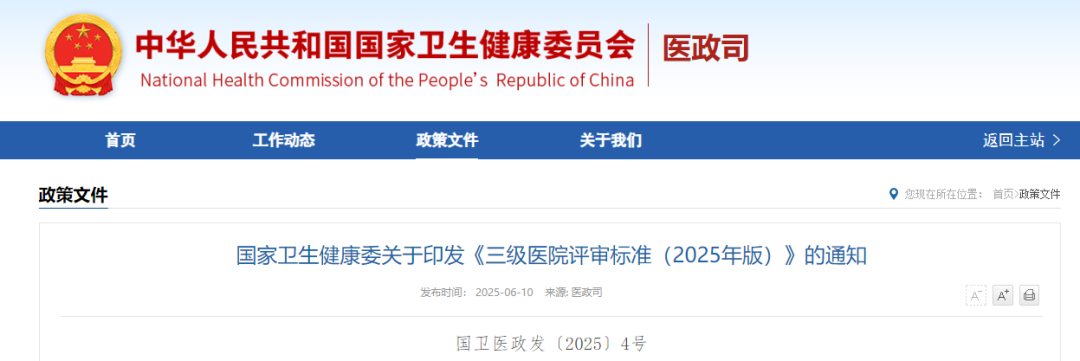 国家卫生健康委关于印发《三级医院评审标准(2025年版)》的通知(附解读)