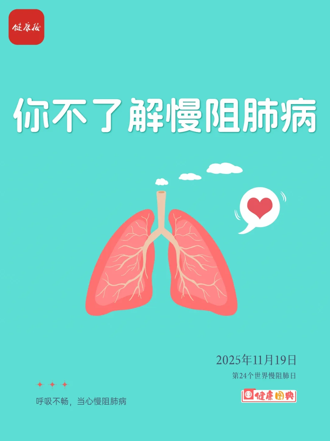 2025年11月19日是世界慢阻肺日,今年的活动主题是“呼吸不畅,当心慢阻肺病”,旨在提高公众对慢阻肺病的认知和重视。