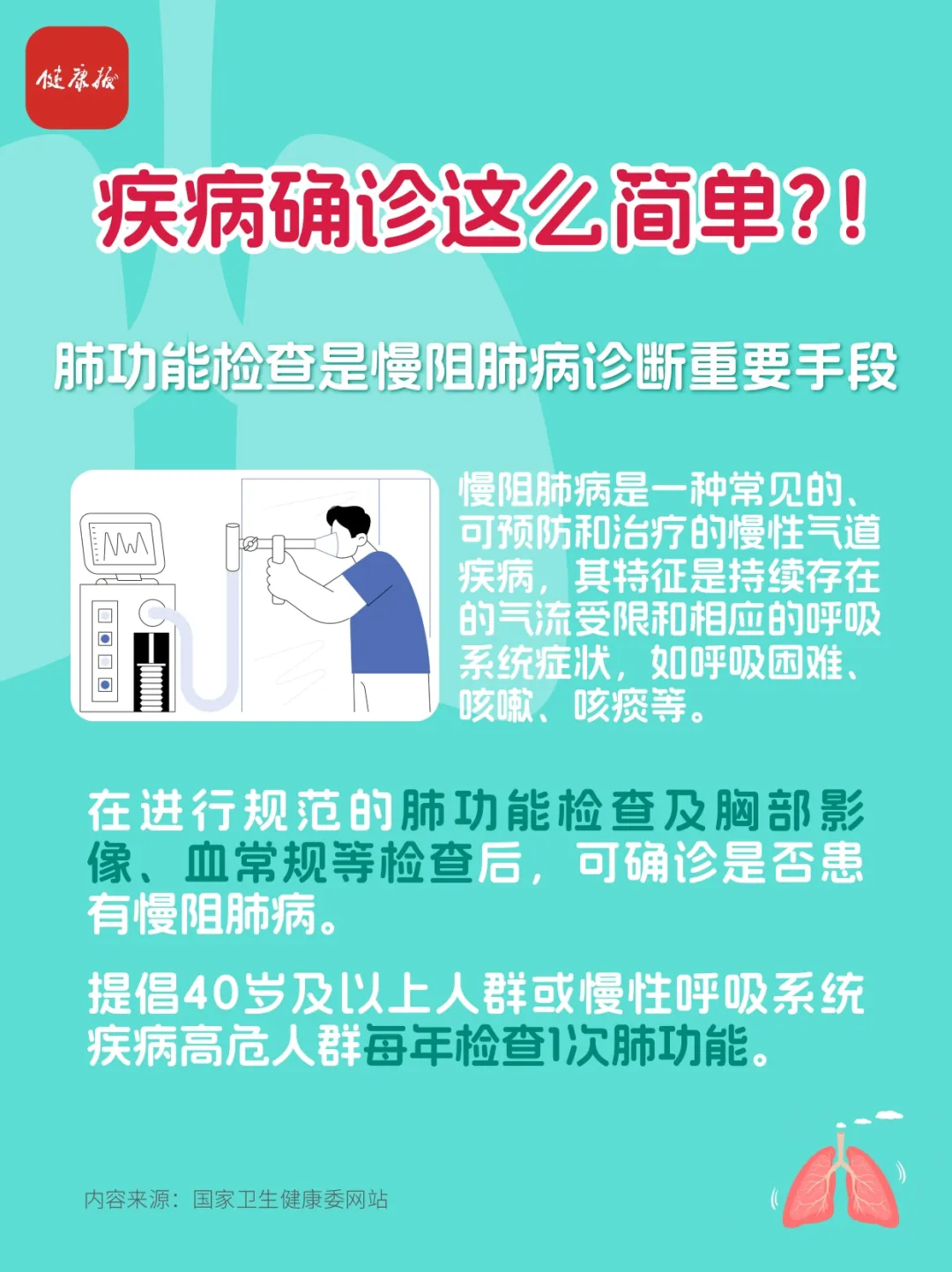 你知道什么是慢性阻塞性肺疾病(慢阻肺病)吗? 你知道慢阻肺病现在有多少患者吗? 你知道有多少人罹患慢阻肺病却不浑然不觉吗? 你知道如何诊断慢阻肺病吗?