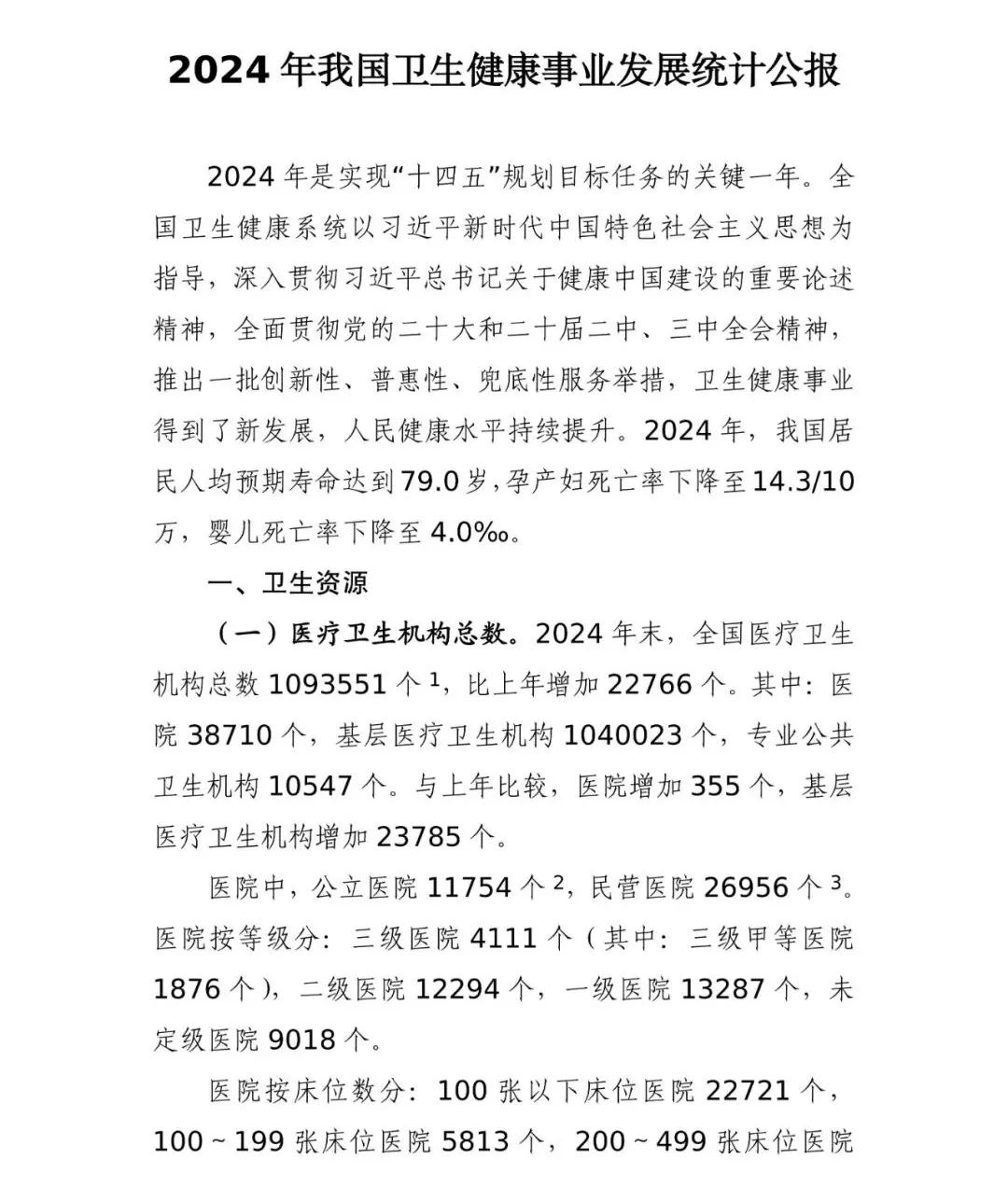 《2024年我国卫生健康事业发展统计公报》发布:全国中医类医疗卫生机构总数超十万