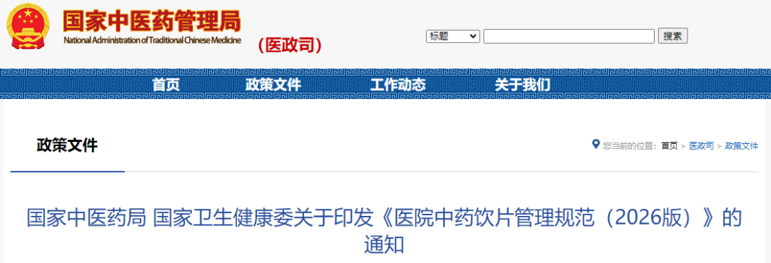 国家中医药局 国家卫生健康委关于印发《医院中药饮片管理规范(2026版)》的通知